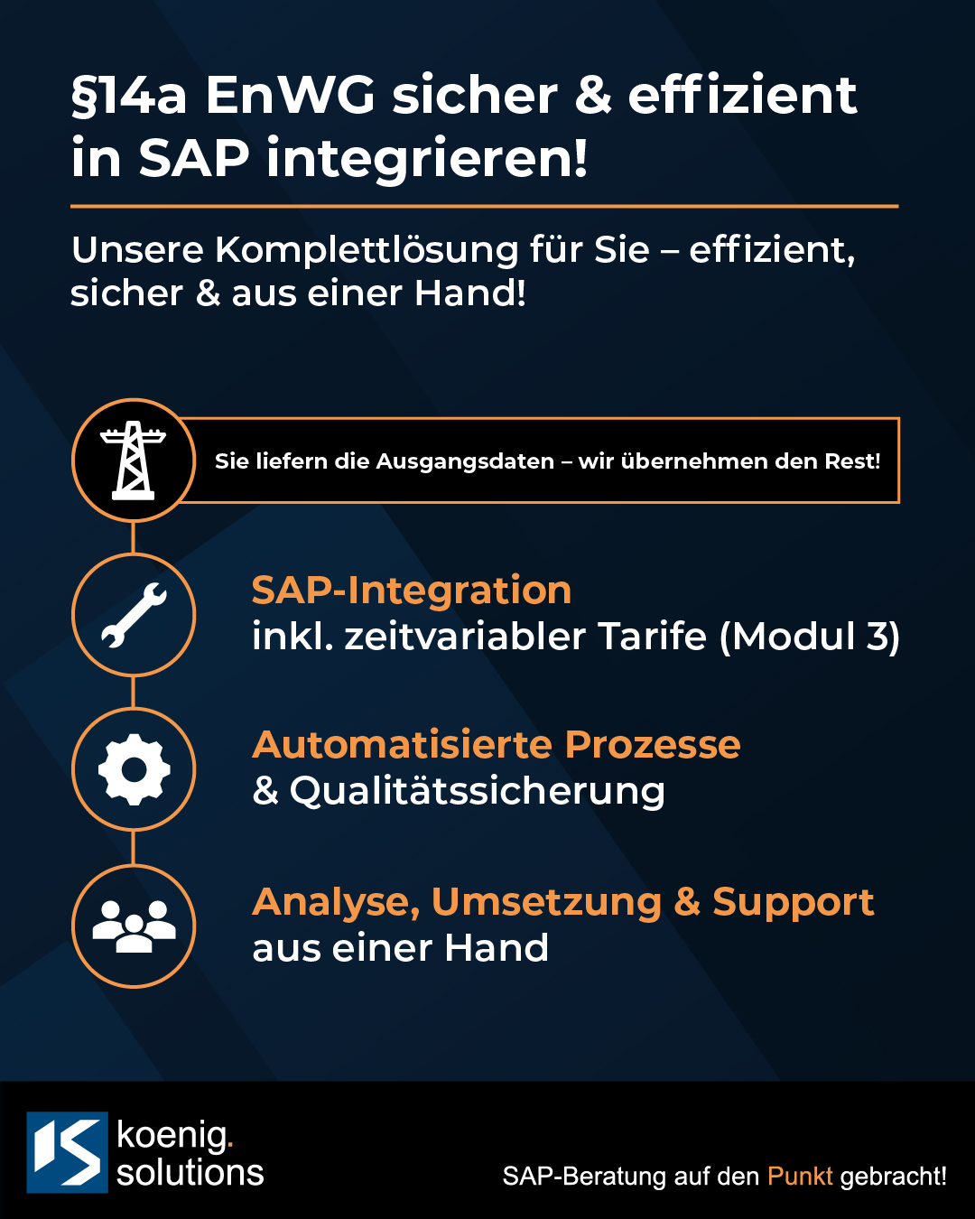 ⚡§ 14a EnWG im SAP-System: sicher, effizient & vollständig aus einer Hand! Die Anforderungen aus § 14a EnWG – insbesondere in Modul 3 mit zeitvariablen Netzentgelten – stellen viele Unternehmen vor komplexe technische und regulatorische Herausforderungen. Mit koenig.solutions setzen Sie alle Module effizient in Ihrem SAP-System um. ✅ Analyse Ihrer Systemlandschaft ✅ Konzeption passgenauer SAP-Lösungen ✅ Automatisierte Umsetzung und Qualitätssicherung ✅ End-to-End-Testing & Hypercare ✅ Spezial-Know-how für zeitvariable Tarife (Modul 3) 🎯 Ihr großer Vorteil: Wir übernehmen das komplette Projekt, Sie sparen Zeit und Ressourcen! Jetzt informieren und mit uns § 14a EnWG sicher, automatisiert und zukunftsfähig umsetzen. Kommen Sie auf uns zu und profitieren Sie von unserer für Sie maßgeschneiderten Komplettlösung! 🤝 Ihr Ansprechpartner: 📧Andre Eichler, andre.eichler@koenig.solutions 📞 +49 6227 5499388 |